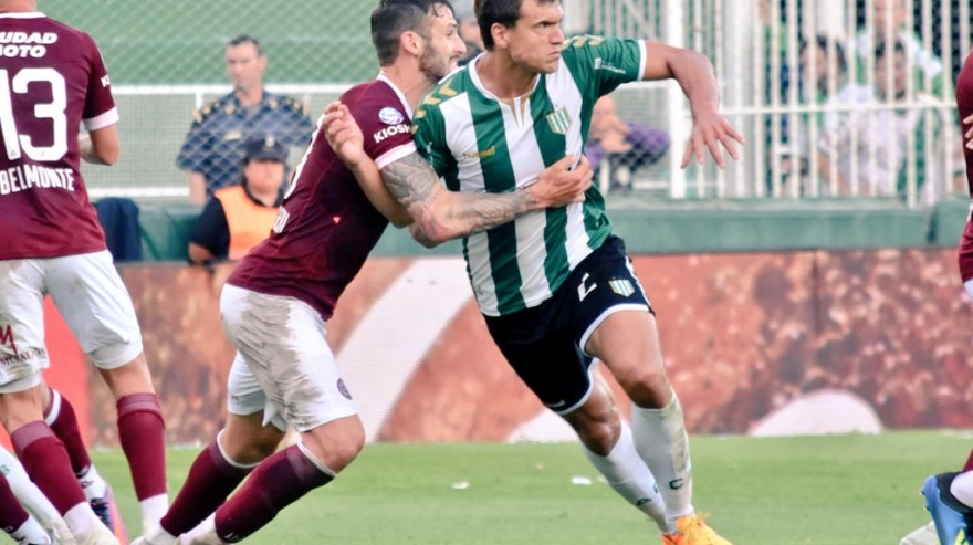 Tres minutos después lo iba a tener nuevamente el número 21, en este caso de tiro libre. El cordobés remató desde la puerta del área al palo del arquero banfileño, pero su disparo se estrelló en el travesaño y le negó nuevamente el gol al conjunto lanusense.