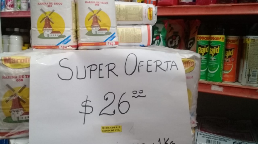 El precio de productos como el paquete de harina o fideos ya fueron actualizados en el comercio de Isabel: hasta la semana última, un kilo de harina 000 costaba 40 pesos y el de fideos 45, mientras que hoy salen 26 y 38 pesos, respectivamente.