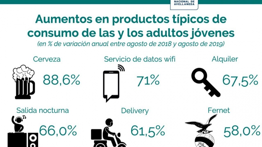 El Observatorio de Políticas Públicas de la Universidad Nacional de Avellaneda (Undav) publicó un informe hecho por estudiantes en el que se destacan aumentos de bienes y servicios que emplean los jóvenes de hasta el 500 por ciento, desempleo del 23 por ciento y encarecimientos del nivel de vida, entre otros aspectos económicos.