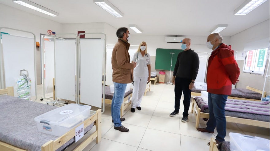 Con la presencia del diputado provincial Adrián Urreli; el jefe de Gabinete local, Diego Kravetz; y el secretario de Salud local, Gustavo Sieli, las autoridades mencionadas recorrieron en primer lugar el Centro de Camas Extrahospitalarias, destinado a la atención médica de pacientes con requerimiento de oxígeno leve. Con 24 camas y la posibilidad de llegar hasta 35, el espacio cuenta con administración de ingreso y egreso de pacientes, farmacia, baño para pacientes y baño para profesionales, dormitorio médico y shock room.