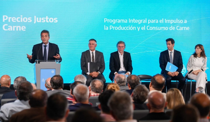 En el encuentro, en el que participaron el titular de la AFIP, Carlos Castagneto; y la presidenta del Banco Nación, Silvina Batakis; el ministro Massa sostuvo: "En enero, la carne fue uno de los productos que más afectó a la inflación y para dar respuesta a estos aumentos y acompañar a un sector afectado por las sequías, con Precios Justos los productores podrán acceder a ayudas por hasta el 40% del alimento necesario para el Feedlot".