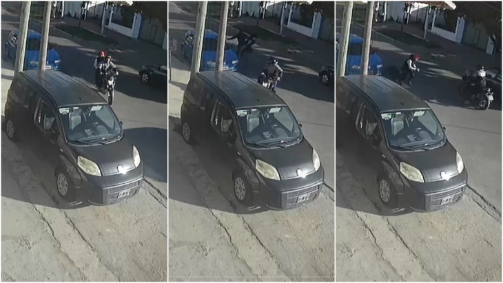 El hecho quedó registrado por una cámara de seguridad privada en la que se ve la acción de los “motochorros” y la del joven, quien corrió hacia uno de los delincuentes para intentar que no lleve adelante el robo.