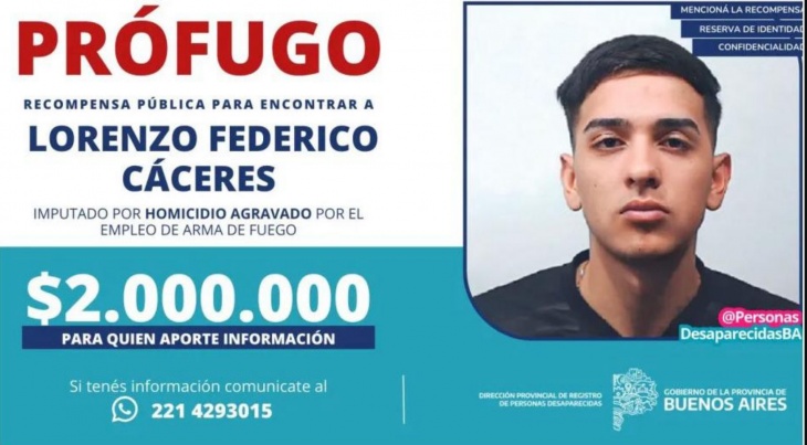 Se trata del presunto autor material del asesinato, quien le disparó en la cabeza a la víctima, y por quien el Ministerio de Seguridad había ofrecido una recompensa de 2 millones de pesos para quien aportara datos sobre su paradero.