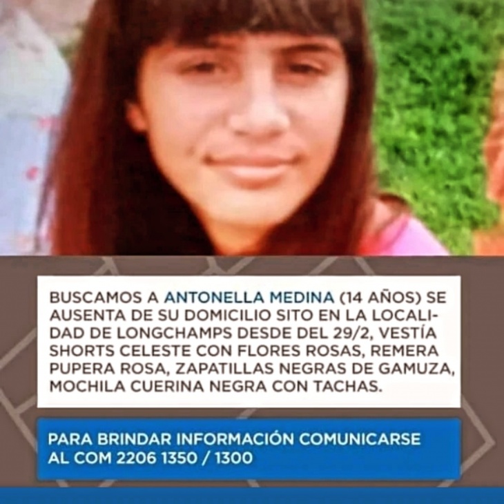 La menor de edad, llamada Antonella Medina, le pidió permiso a su madre para visitar a su novio, en el barrio porteño de Constitución, a lo que la mujer se negó. Esto provocó el enojo de la adolescente, que se escapó de su hogar y no aparece desde entonces.