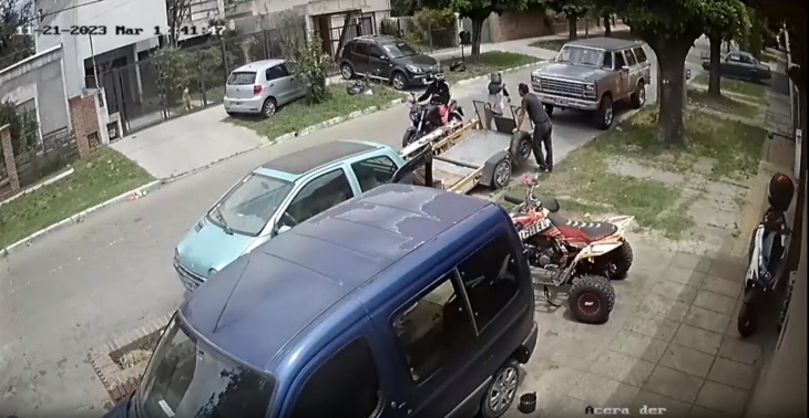 El ataque cometido contra el mecánico fue registrado por una cámara de seguridad y en la grabación se ve cuando dos personas con cascos colocados se acercan al taller de Micheli.