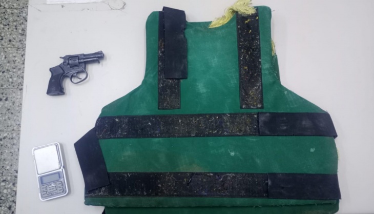 Los uniformados persiguieron a los sospechosos hasta lograr alcanzar a una mujer de 26 años. La sospechosa en principio se resistió a la aprehensión y descartó en su huida un chaleco antibalas sin numeración, una balanza de precisión, un revolver Ítalo Gra calibre 22 con dos proyectiles.