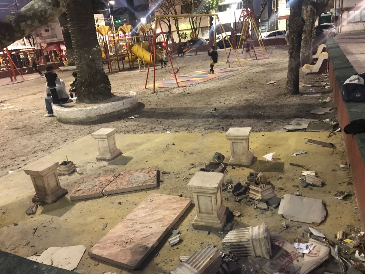 "Es muy doloroso ver que los bienes de nuestra comunidad son destruidos por el accionar anónimo de inadaptados que no hacen más que dificultar el disfrute del espacio público que es de todos los vecinos que han esperado mucho tiempo para ver la plaza en condiciones", enfatizó.