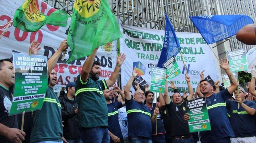 Los trabajadores de la empresa Cofco (ex Nidera) de Valentín Alsina se movilizaron ayer al Ministerio de Trabajo bonaerense para rechazar el cierre de la aceitera y exigir la continuidad de sus puestos laborales.