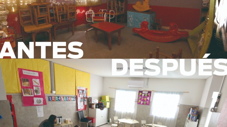 La remodelación del edificio consistió en la construcción de cuatro aulas con baños, un salón de usos múltiples (SUM), remodelación del patio de juegos e incorporación de mobiliario para el uso de niños y niñas. Además, se realizó una puesta en valor general de la fachada, sumando pintura e impermeabilización.