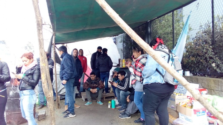 Los trabajadores de la ex Ran Bat abrieron un fondo de lucha para recibir donaciones monetarias y de alimentos, y así poder mantener el acampe. “Ahora viene jodido, esto tiene para rato. Nos vamos a quedar acá hasta las últimas circunstancias, queremos los puestos de trabajo”, arengó el delegado Jonatan Farías en la asamblea improvisada al regresar del encuentro con el Ministerio.