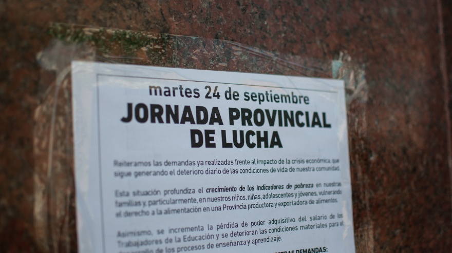 Entre los reclamos, el dirigente incluyó también el “cese de hostigamiento a los trabajadores de la educación por parte del gobierno de la Provincia” y el levantamiento de los sumarios labrados.