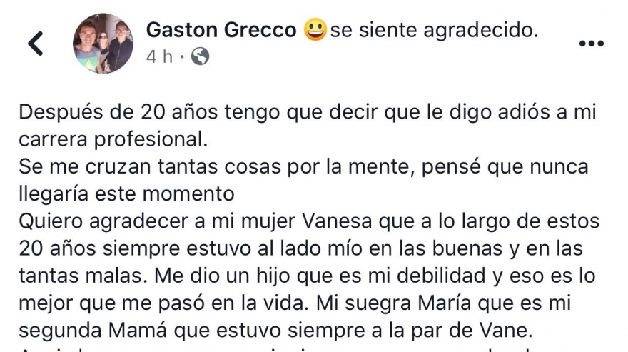 Lo que lama la atención en la carta, que no haya ningún agradecimiento a Pablo Vicó, quien fue técnico de él en casi todas sus etapas. Lo cierto es que Grecco disputará estos tres partidos ante Tigre de visitante, frente a Defensores de Belgrano de local y cierra con Quilmes en el Centenario.