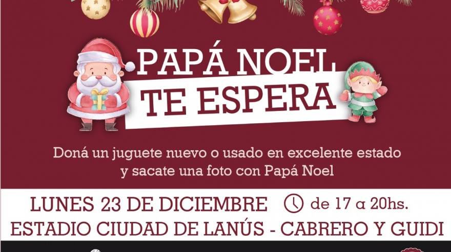 En el marco de la llegada de la Navidad, la Fundación del Club Atlético Lanús realizará hoy desde las 17 hasta las 20 un evento en el Estadio Ciudad Lanús (Cabrero y Guidi), para que las familias lanusenses se acerquen y donen un juguete nuevo o usado en excelente estado a cambio de una foto con Papá Noel.