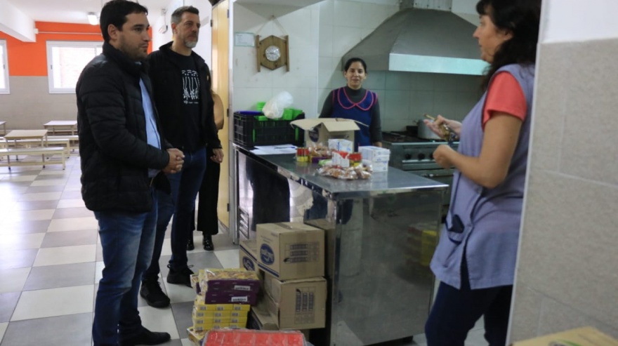El jefe de Gabinete, Diego Kravetz y el secretario de Educación, Empleo y Deportes, Damián Sala, visitaron el Centro Educativo N° 5 y la Escuela Primaria 22 donde los padres de los alumnos recibieron bolsos con alimentos provenientes del Servicio Alimentario Escolar (SAE) con el objetivo de que sus hijos coman con ellos y no estén expuestos al virus.