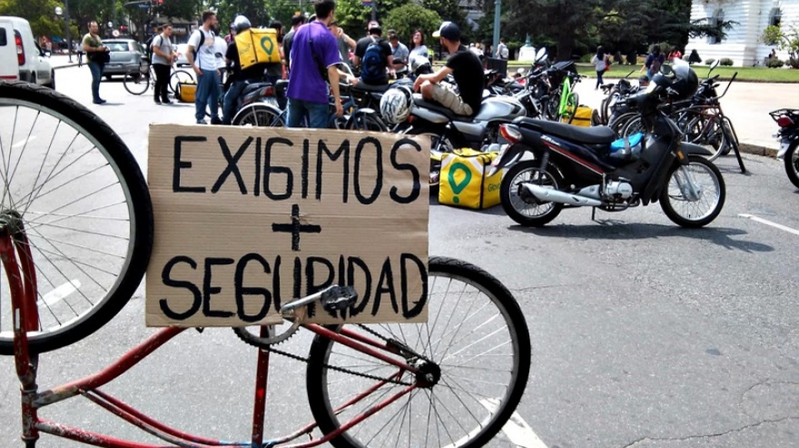 Según los dirigentes, "la mal llamada ‘economía colaborativa’ se asienta en la precarización laboral, y ésta provoca consecuencias trágicas para la vida de cada repartidor, desde el padecimiento de una existencia miserable hasta el riesgo de perder la vida por no existir condiciones para conducir en el marco de un tránsito complejo y peligroso como el del área metropolitana", expresó Arranz.