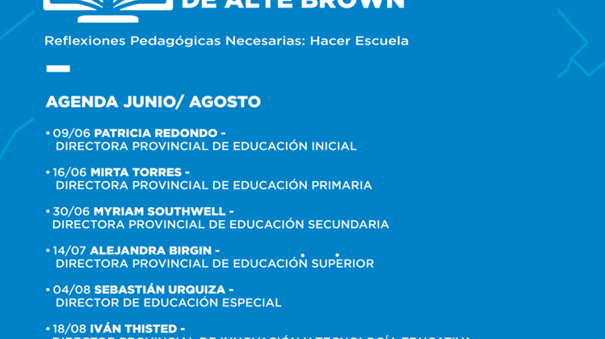 A través de Zoom, la iniciativa se desarrollará bajo la consigna “Reflexiones Pedagógicas Necesarias: Hacer Escuela” y se extenderá hasta el 5 de septiembre. Según manifestó el secretario de Educación municipal, Sergio Pianciola, “las jornadas harán eje en la institución escolar relativizando la virtualidad como un recurso para el desarrollo de la enseñanza”, debido a que, añadió, “nada será igual, habrá otra normalidad”.