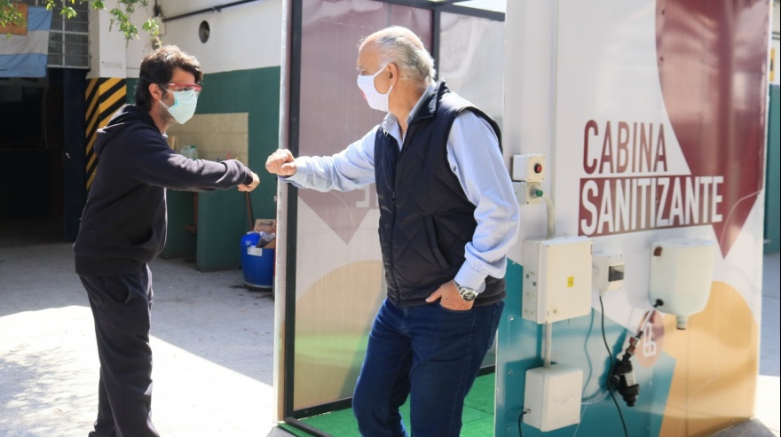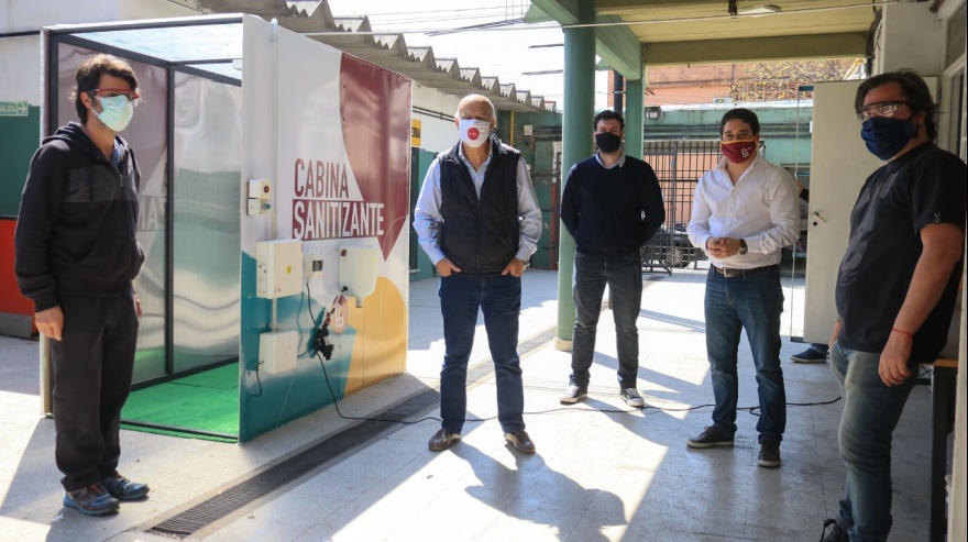 El intendente de Lanús, Néstor Grindetti, visitó a docentes y emprendedores de la ET N°4, quienes desde el inicio de la pandemia comenzaron a trabajar en conjunto con el área de Industrias Creativas del Municipio de Lanús en la confección de una cabina sanitizante completamente realizada con residuos tecnológicos e insumos donados por emprendedores. La misma tendrá como destino una dependencia municipal de atención al público.