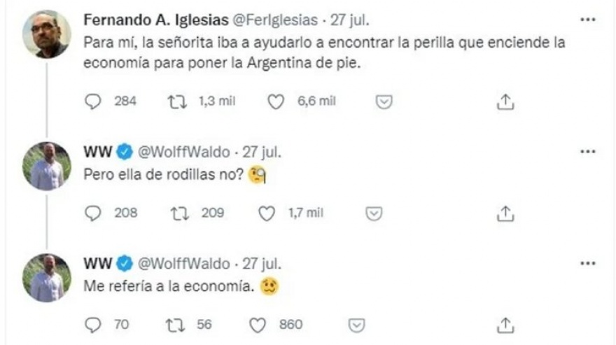 Así fue el caso de la vicepresidenta de Correo Argentino, Mónica Litza, que a través de sus cuenta personal de Twitter aseguró que “Iglesias es un fomentador y replicador de odio, un misógino que atrasa”.