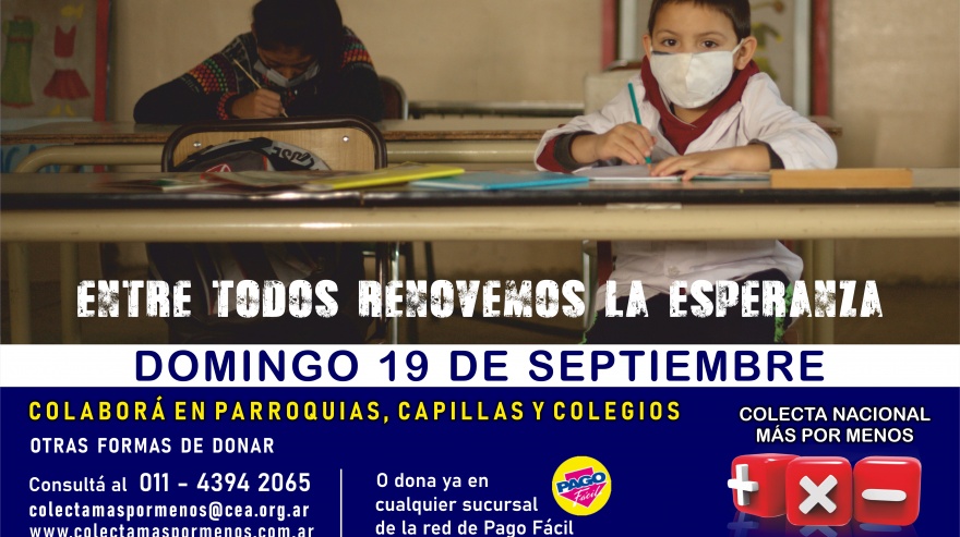 Para donar de manera virtual pueden hacerlo a través de Pago Fácil o de manera presencial en cualquier iglesia o parroquia. En caso de querer conocer más sobre la labor de la colecta o colaborar en cualquier momento del año pueden ingresar a: www.colectamaspormenos.com.ar o por teléfono al 4394-2065 o 1551480286.