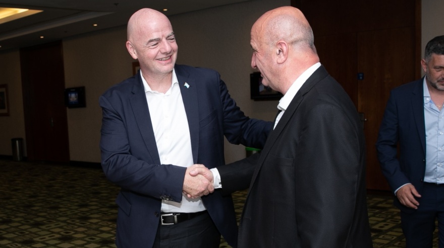 #Institucional El Presidente Claudio Tapia, acompañado por un grupo de dirigentes de distintos clubes, agasajó con una cena de bienvenida al Presidente de la @FIFAcom, Gianni Infantino. pic.twitter.com/VQp5u5nCTO