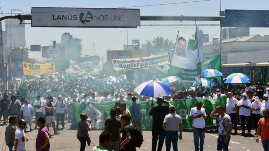 La protesta fue organizada por el Sindicato de Trabajadores Municipales que lidera Miguel Pedelhez en reclamo de un aumento salarial del 12 por ciento y en repudio al 5 por ciento otorgado por decreto por el intendente Néstor Grindetti.