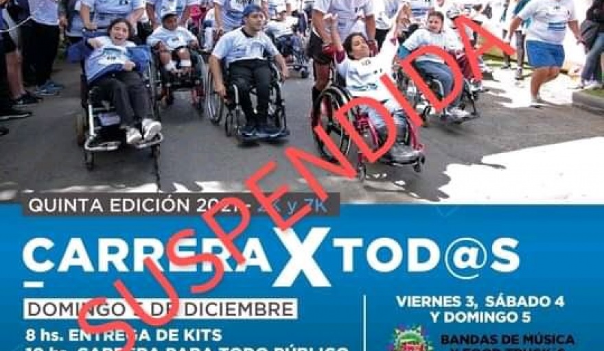 La quinta edición de la “Carrera X Tod@s” que iba a realizarse este domingo en Almirante Brown fue suspendida por razones climáticas.