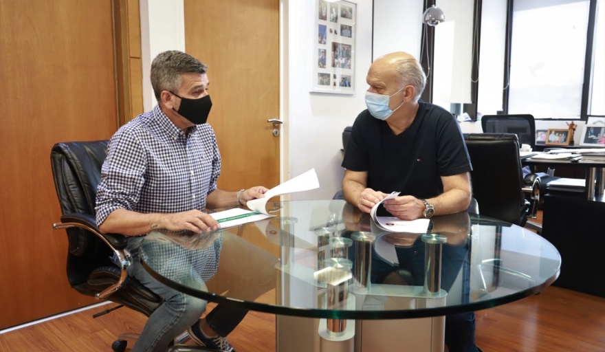 El intendente de Lanús, Néstor Grindetti, recibió este martes al ministro de Desarrollo Social de la Nación, Juan Zabaleta, con quien analizó la implementación de los programas sociales en el distrito.