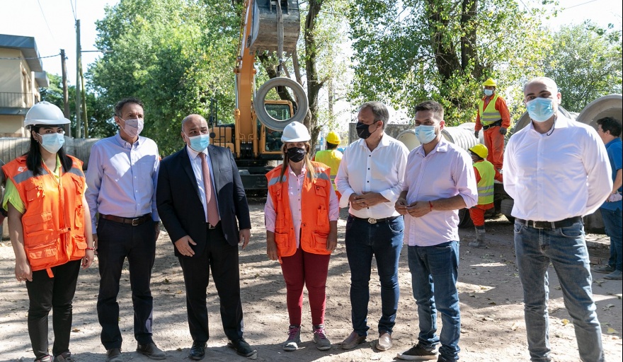 El intendente interino de Almirante Brown, Juan Fabiani y el diputado bonaerense Mariano Cascallares recorrieron obras en la localidad de Longchamps junto al jefe de Gabinete de la Nación, Juan Manzur, y el ministro de Obras Públicas de la Nación, Gabriel Katopodis.
