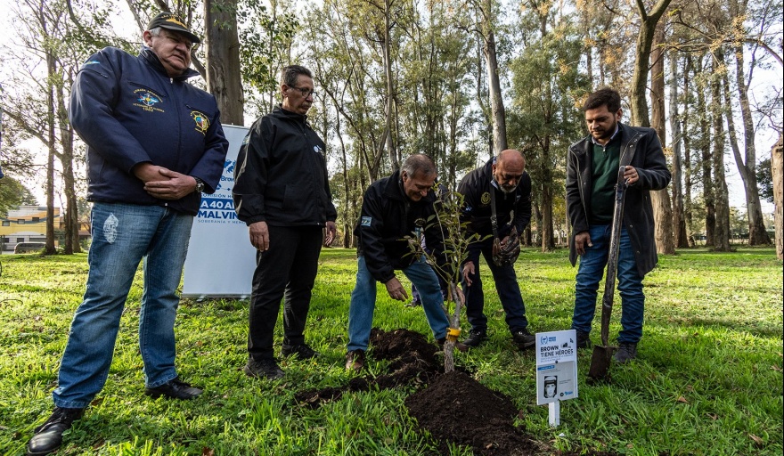 Luego las autoridades junto a familias de los héroes brownianos realizaron la plantación de árboles, de los cuales cinco son ceibos que crecerán y florecerán para mantener viva la memoria de nuestros héroes caídos en Malvinas y también un tala que dará frutos para recordar a los ex combatientes fallecidos en posguerra.