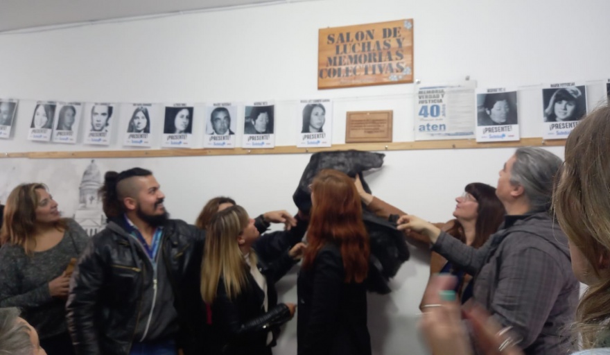 Para finalizar con el acto, mostraron la placa con la que se oficializó el nombre de la sala en la que se encuentra el mural: “Salón de Luchas y Memorias Colectivas”.