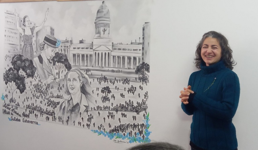 A continuación, se mostró el mural creado por la artista Stella Maris Arslanian. “Me preguntaron en qué me había inspirado, primero al ver la pasión con la que me hablaban y me hacían el pedido, además, la entrega de Eva para la comunidad”, enfatizó y valoró la calidez y la confianza de los integrantes de Suteba Echeverría.