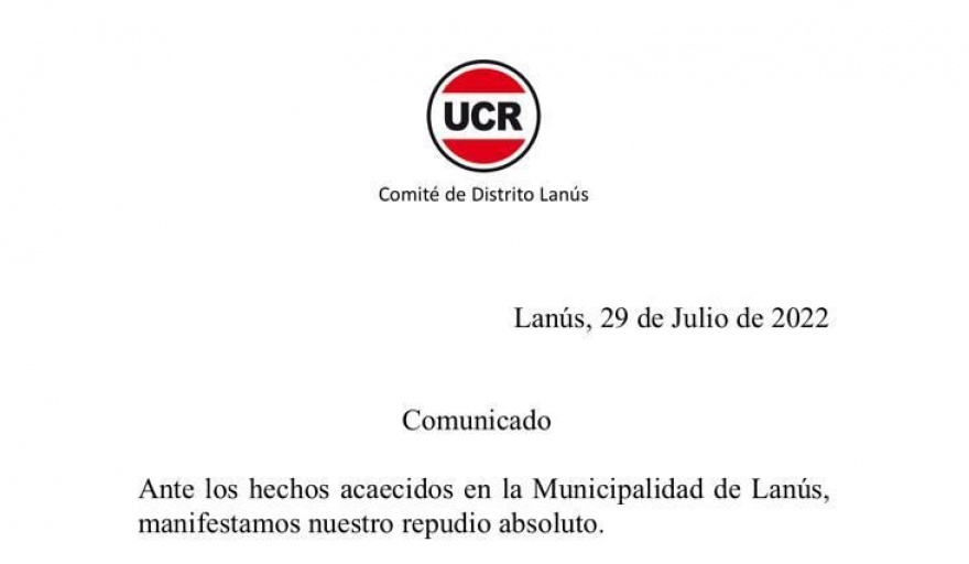 Ante los hechos del día de la fecha en el @lanusmunicipio, comunicado del @ucr_comitelanus que compartimos. pic.twitter.com/2mmdzu9Pyx
