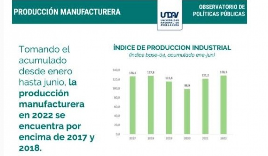 El Índice de Producción Industrial Manufacturero (IPI Manufacturero) a nivel general, se encuentra en niveles superiores a los registrados en junio del año 2021 con un valor de 137,4 (año base=2004). Esto implica una mejora del 6,8% interanual. Mientras que si tomamos el acumulado al sexto mes del año y lo comparamos con el del año 2021, la variación es positiva por +5,9%.