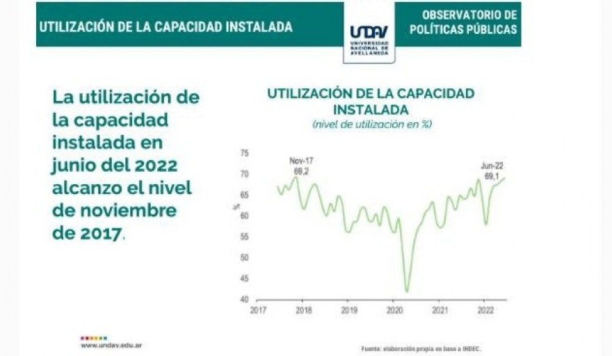 El uso de la capacidad instalada industrial, en junio de 2022, exhibió un nivel de 69,1%, superior al registrado en junio de 2021 (64,9%) y alcanzó el valor más alto en casi 5 años (en noviembre del 2017 se ubicaba en 69,2%). De lo que va del año, el Índice de Producción Industrial Manufacturero (IPI Manufacturero), en promedio y para el acumulado de enero-junio, presentó un aumento del 5,9% con respecto al mismo período del año anterior. Cabe destacar, que es el máximo valor registrado en los últimos 5 años.