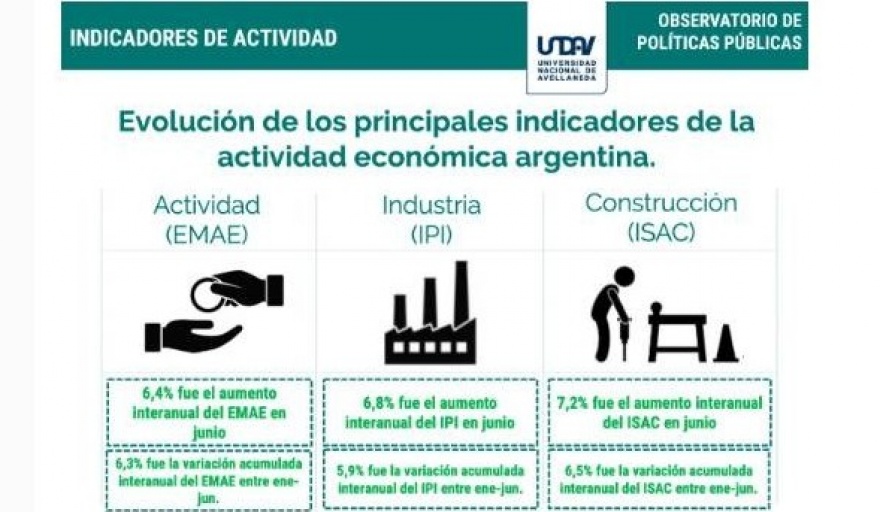 En junio de 2022, el Estimador mensual de actividad económica (EMAE) registró una variación de 6,4% respecto al mismo mes del año 2021. El índice de la serie desestacionalizada (2004=100) se incrementó 1,1% respecto al mes anterior, mientras que el índice de la serie tendencia-ciclo (2004=100) registró una variación de 0,4%.