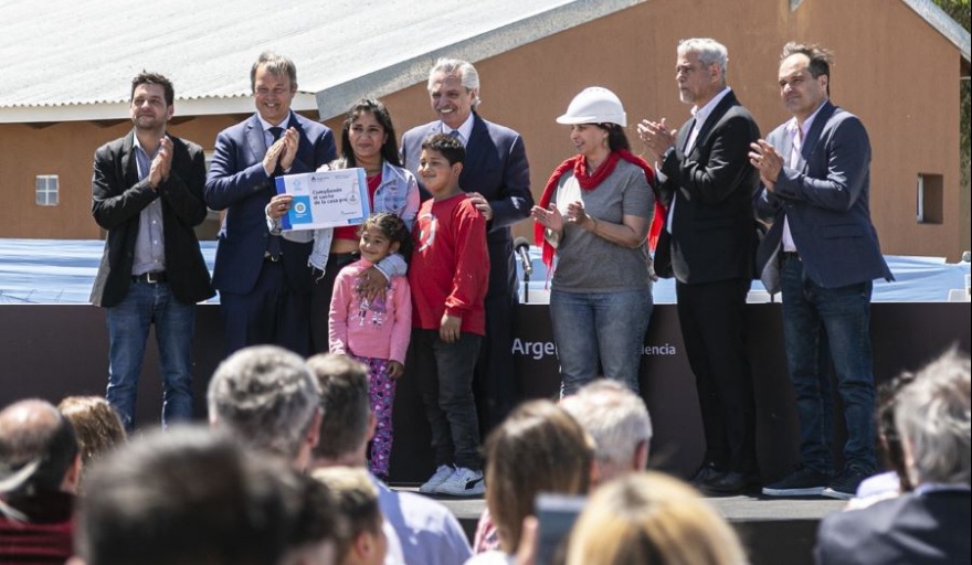 “Cada vez que participo de estos actos digo que no hay momento más grato que entregar la llave de su casa a las familias porque la certeza de tener un techo saca mucha presión de encima y permite proyectar el futuro con una tranquilidad distinta”, sostuvo Alberto Fernández al tomar la palabra.