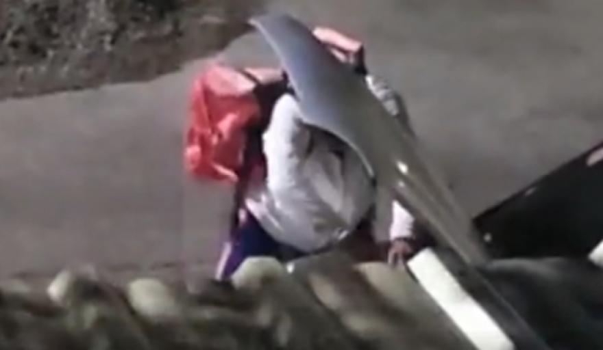 Una vecina denunció que el sospechoso, que cargaba la tradicional mochila cuadrada térmica para el traslado de mercadería, estaba sacándole la batería a un auto en plena calle, durante un episodio ocurrido este domingo en Boquerón y San Vladimiro y quedó filmado.
