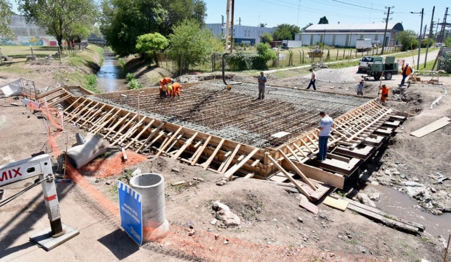 El Municipio de Almirante Brown avanza con la construcción de un puente vehicular de hormigón en la calle Cuyo, sobre el Arroyo del Rey, para potenciar la transitabilidad, la accesibilidad y la circulación en toda la zona del Parque Industrial de Burzaco y los barrios de esa zona.