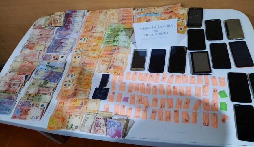 En total, se secuestraron 60 envoltorios de cocaína listos para su venta, elementos de fraccionamiento, pesaje y corte de drogas, dinero en efectivo y varios teléfonos celulares.