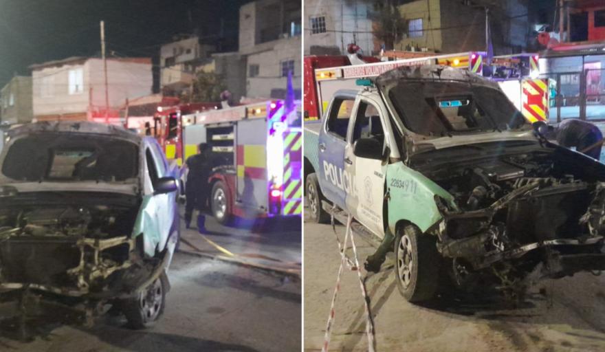 Dos oficiales del Comando de Patrullas de Lanús tuvieron que ser rescatados y trasladados al Hospital Evita.