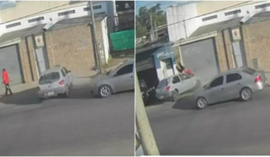 Las cámaras de seguridad registraron el momento del hecho. Allí se ve a un vehículo fuera de control que se roza con otro a alta velocidad, pierde el control y atropella a un hombre que caminaba por la vereda.