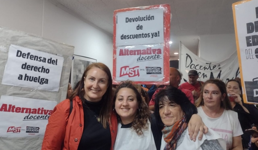 Ahora junto a la Multicolor de SUTEBA en Ministerio de Trabajo exigimos cese de descuentos y persecución a las y los docentes que defendemos la educación pública. Tenemos derecho a huelga!! pic.twitter.com/SbXC0MCLii
