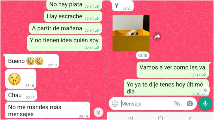 Sin embargo, lo más grave ocurrió a partir del 19 de noviembre, cuando recibió un mensaje de WhatsApp que decía "¿hay recompensa por los perros?"