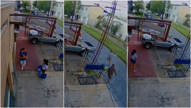 En un video registrado por una cámara de seguridad de la cuadra, se observa la presencia de los asaltantes, que necesitaron pocos segundos para desaparecer de la escena, a bordo del auto de los damnificados.