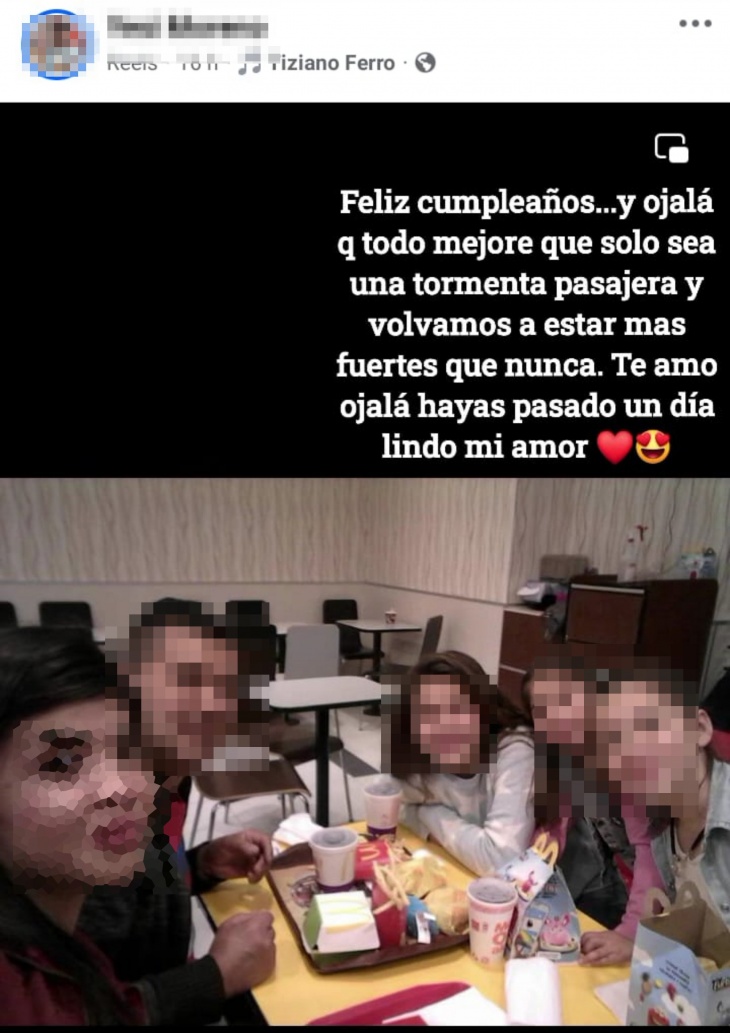 Horas antes, fue su pareja quien publicó un sentido mensaje en sus redes sociales, donde daba cuenta de que algo andaba mal en la relación. "Feliz cumpleaños, y ojalá que todo mejore, que solo sea una tormenta pasajera y volvamos a estar más fuertes que nunca. Te amo, ojalá hayas pasado un lindo día, mi amor", escribió la mujer en su perfil de Facebook, cuyas palabras fueron acompañadas con una foto junto a él y sus hijos.