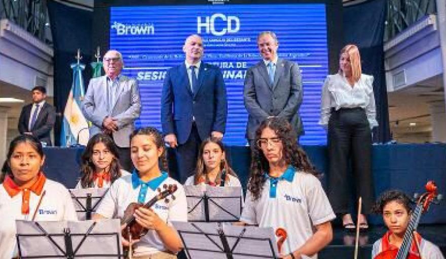 Mariano Cascallares estuvo acompañado por el presidente del Concejo Deliberante browniano, Nicolas Jawtuschenko. Y en el inicio de la ceremonia se destacó la interpretación del Himno Nacional Argentino por parte de la Orquesta Escuela de Alte Brown.