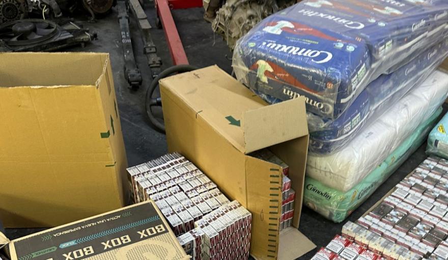 También 35 pack de pañales y apósitos para personas mayores, 46 cajas cerradas con 20 atados cada una de cigarrillos de  diversas marcas y 26 cajas de cigarrillos abiertas de distintas marcas.