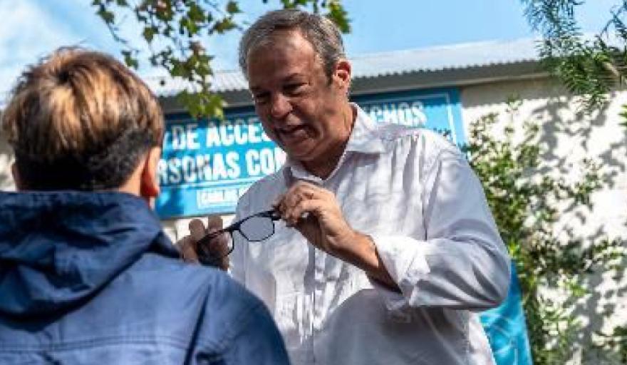 La jornada se llevó adelante en el Centro de Acceso a Derechos para Personas con Discapacidad, situado en Pellegrini N°1015, donde el jefe comunal hizo entrega de los pares de lentes a brownianos de distintos barrios del distrito, en el marco del programa Incluir Salud.