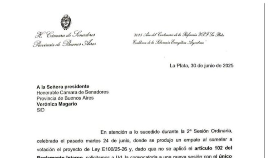 Según explican desde la bancada libertaría, el meneado artículo 102 del reglamento interno de la Cámara Alta provincial reza que si una votación terminase empatada, se abrirá una nueva instancia de discusión y de manera posterior se repetirá la votación y en caso de que volviese a registrarse un empate recién allí tendrá la potestad el presidente del Cuerpo para proceder a desempatar.