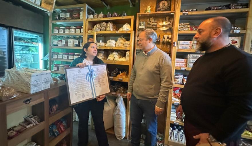 En este marco, Cascallares les entregó una copia de la ordenanza del Concejo Deliberante que expresa su beneplácito por el 30° aniversario de este importante emprendimiento familiar que se dedica al rubro de la alimentación saludable.
